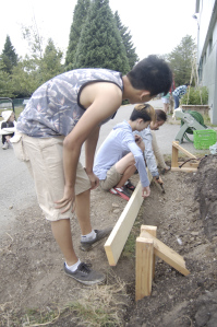 We next got on with building our new bed and trellis. We got to saw through some planks and level the soil, not to mention using power drills to put it all together. We also tied a lot of knots and wrapped a lot of tomatoes around strings for them to grow taller. It took a lot of blood, sweat, and tears, but we pulled through and became champions of building garden beds and tomato trellis’.