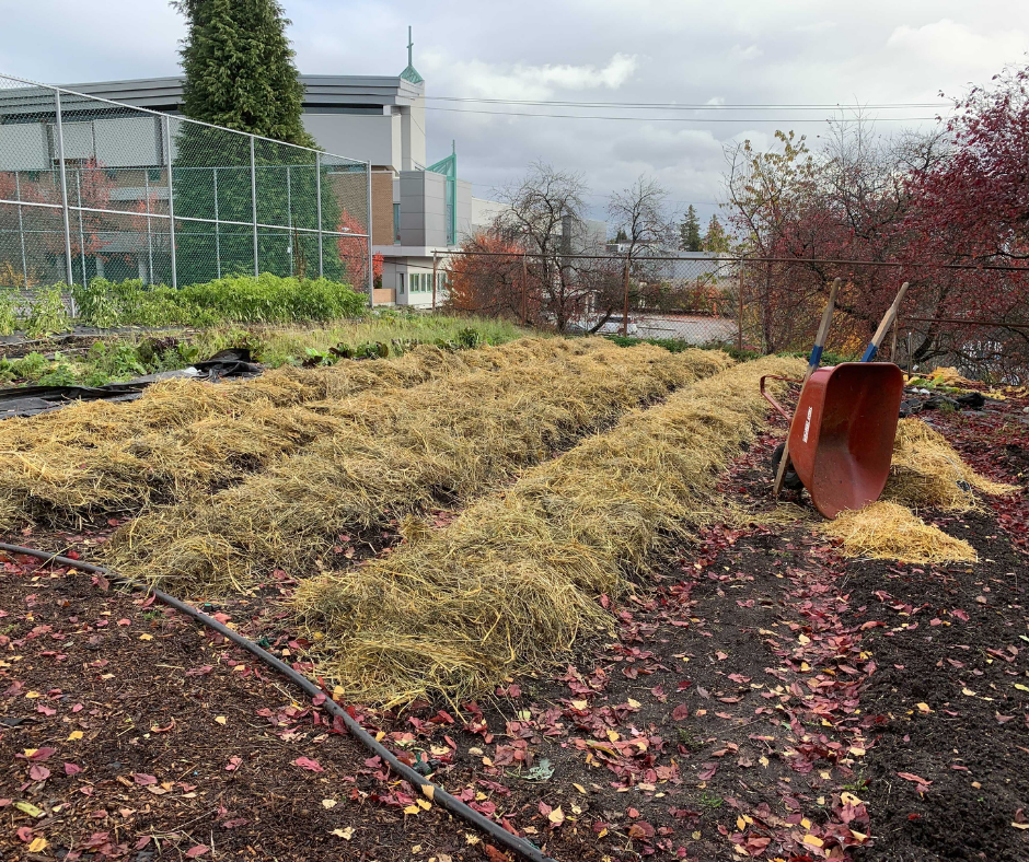 Galen and I did get our garlic planted at Van Tech: 4 X 45 ft beds (not ten, like I imagined) to mature into big heads of Russian Red Garlic. Amendments we used were compost and river sand, sul-po-mag, and blood meal. We mulched with 6 inches of straw and will add seaweed when it washes ashore in Delta again and we have time to harvest it. We messed around with the spacing a little bit but ended up with 3 rows per bed, intermittently planted (laid out in a posts-and-windows pattern) 6-8 inches apart. It’s important to make sure each clove has 3-4 inches in every direction so it has space to expand its roots and get juicy. That means we planted about 1,000 cloves in these four beds. We also installed 3 X 25-ft beds at about 4-inch spacing for green garlic, which is like a delicious, garlic-flavoured leek harvested in the spring. For this purpose, we used the smallest cloves and some bulbils (garlic flower-produced seed). I’m excited to see how they turn out — I’m expecting thin, single-cloved, tender stalks that we will bunch for our CSA in 2022.